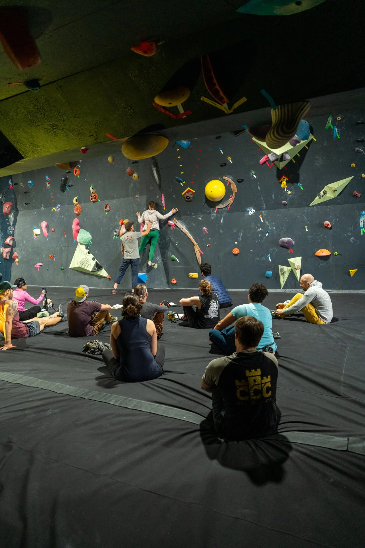 At CCC we are using the circuits system. A bouldering circuit is a grading system that groups boulder problems by difficulty, using different colors to represent a range of V-grades.