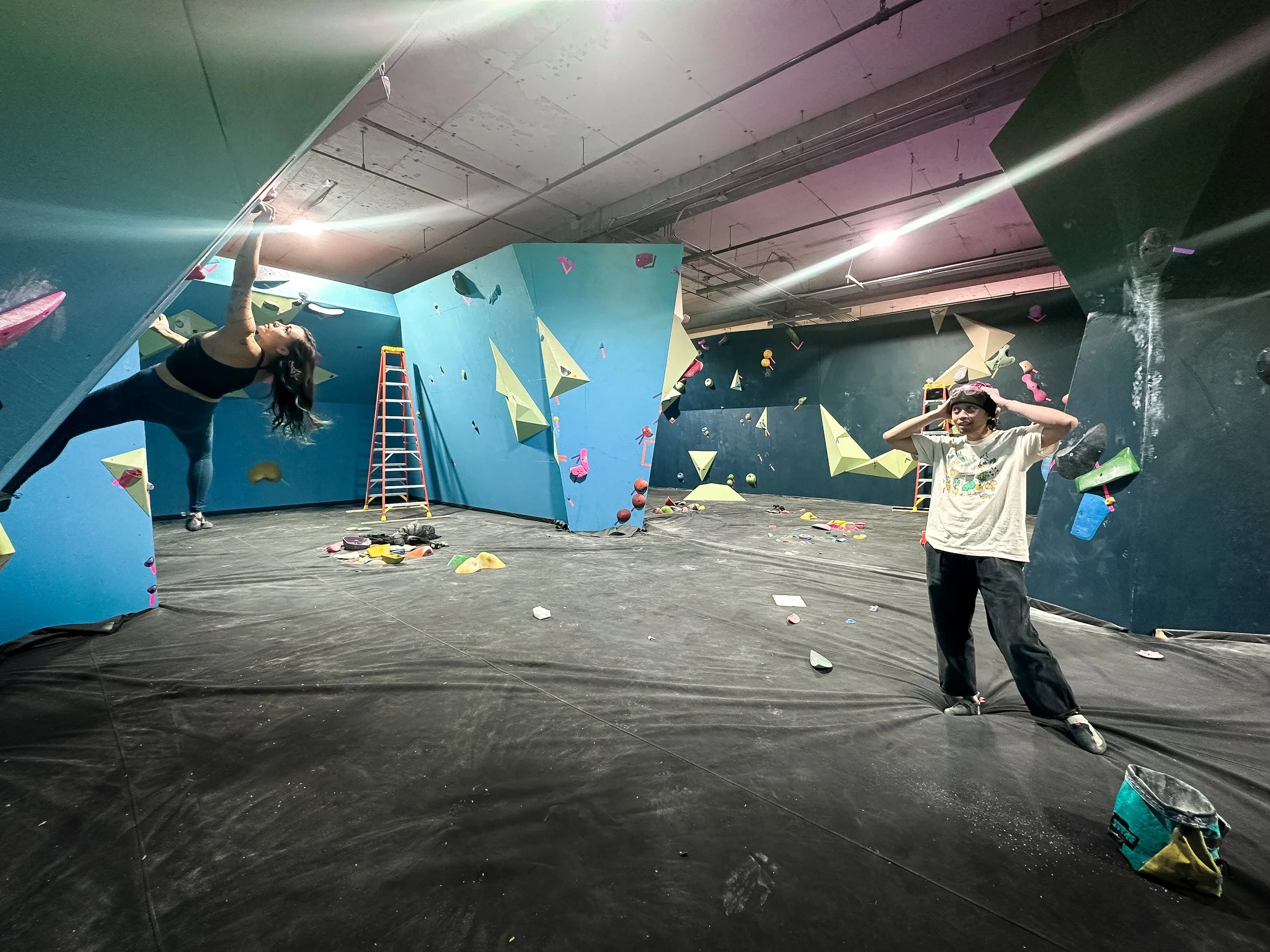 DIY Spirit; Our set team is world class. They dream up cool routes w/custom made holds, volumes and some really unique & fun climbs.